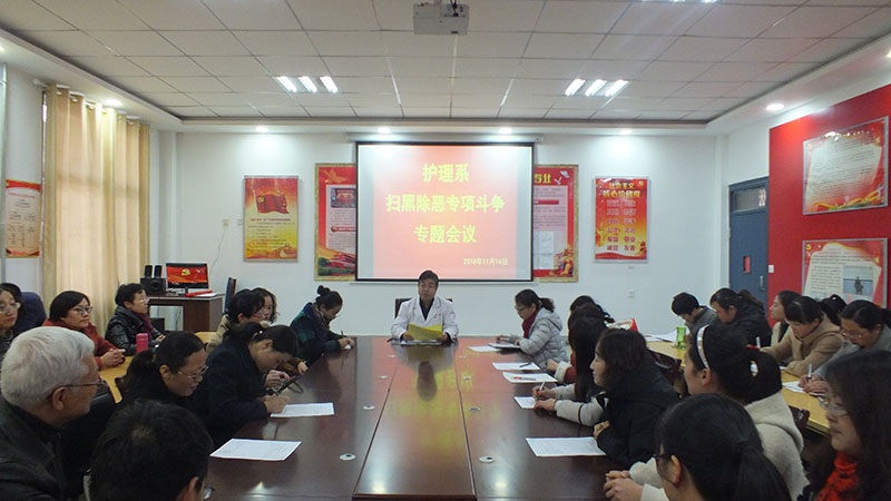 11月14日下午,護理系在明遠樓103會議室召開了掃黑除惡專項斗爭專題會議,傳達學習學院關于掃黑除惡專項斗爭工作會議精神,會議由系黨總支書記張建輝主持,護理系全體教師參加了本次會議。