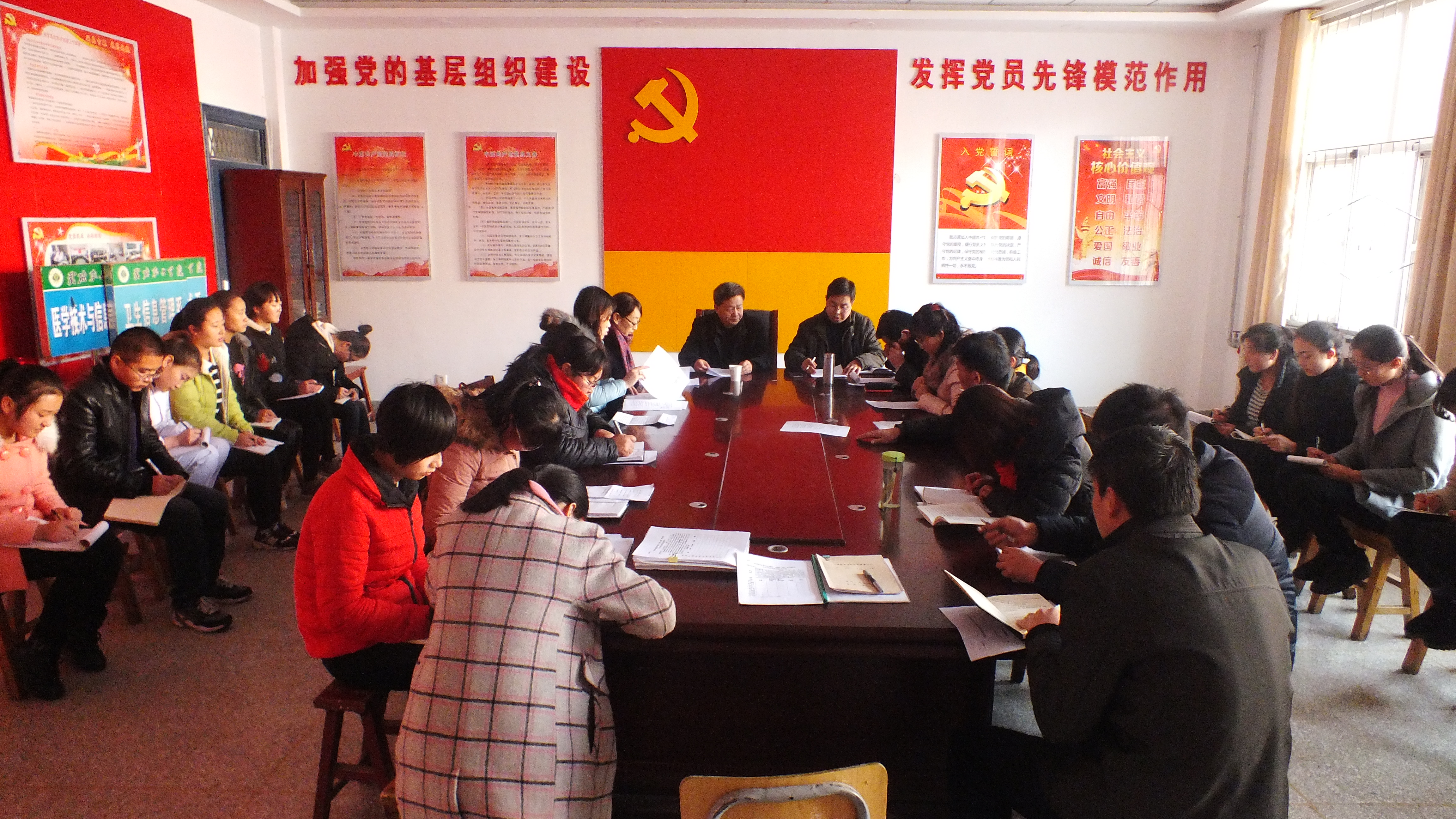 根據(jù)學(xué)院“兩學(xué)一做”學(xué)習(xí)教育活動(dòng)安排,1月6日下午,護(hù)理系黨總支在明遠(yuǎn)樓103黨員活動(dòng)室召開了“兩學(xué)一做”專題教育組織生活會(huì)和民主評(píng)議會(huì)。學(xué)院黨委副書記趙明參加會(huì)議并指導(dǎo)工作,護(hù)理系黨總支全體黨員及入黨積極分子參加了會(huì)議,會(huì)議由黨總支書記張建輝主持。