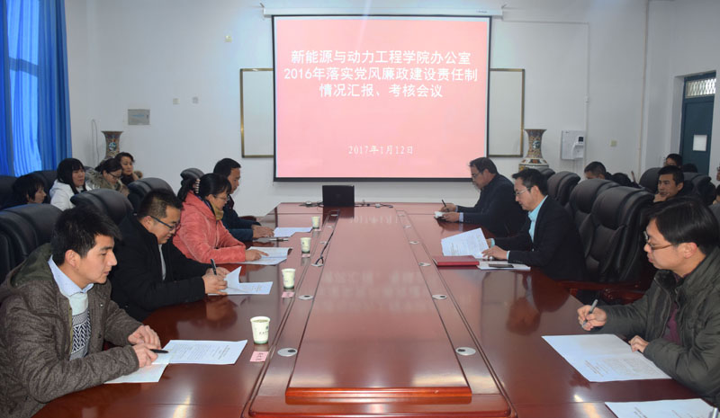1月12日下午,學(xué)院副院長田迎春帶領(lǐng)學(xué)院第六考核組,對新能源與動(dòng)力工程學(xué)院辦公室2016年度黨風(fēng)廉政建設(shè)和反腐敗工作進(jìn)行了全面檢查考核。新能源與動(dòng)力工程學(xué)院全體教職工參加了會(huì)議。