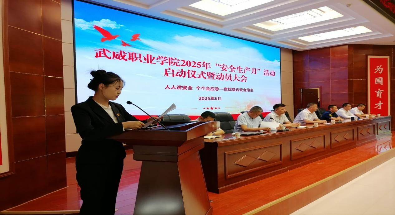 6月16日下午,“安全生產(chǎn)月”啟動(dòng)儀式暨動(dòng)員大會(huì)在學(xué)校菁英廳舉行。學(xué)校黨委委員、副校長(zhǎng)王守云作動(dòng)員講話(huà),強(qiáng)調(diào)校園安全是辦學(xué)治校的生命線(xiàn),要求全校師生以高度的責(zé)任感積極參與各項(xiàng)活動(dòng),將安全理念內(nèi)化于心、外化于行。安全保衛(wèi)處處長(zhǎng)李欣對(duì)活動(dòng)作了詳細(xì)安排。學(xué)生代表王盼發(fā)出倡議,號(hào)召同學(xué)們自覺(jué)學(xué)習(xí)安全知識(shí)、遵守安全規(guī)范、擔(dān)當(dāng)安全責(zé)任。最后,師生代表在印有活動(dòng)主題的承諾墻上鄭重簽名,表達(dá)踐行安全的堅(jiān)定決心。