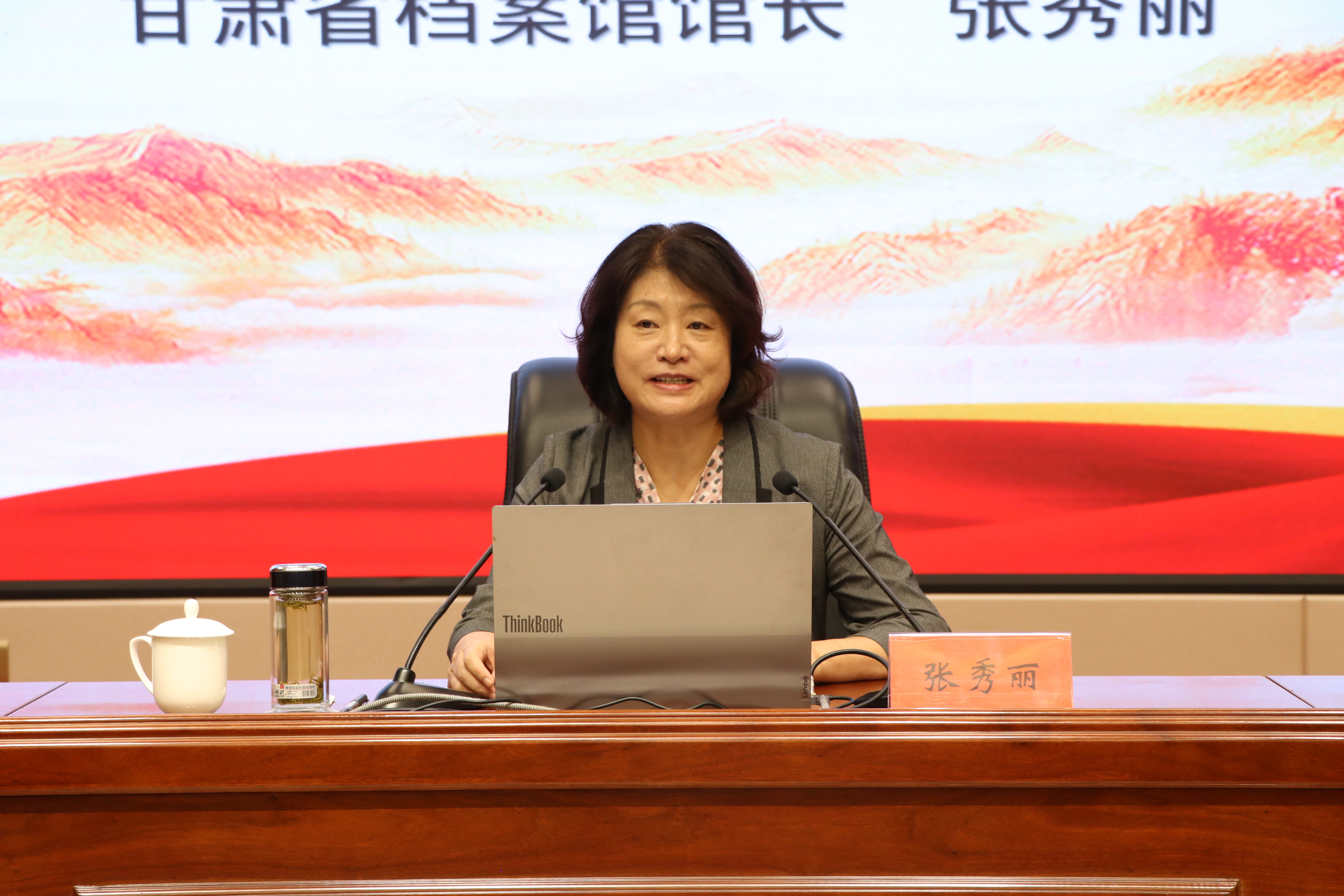 張秀麗結(jié)合自身從事檔案管理和文化研究的豐富經(jīng)驗(yàn),從檔案“存史、資政、育人”根本任務(wù)出發(fā),通過大量珍貴檔案文獻(xiàn)和歷史案例,系統(tǒng)闡述了檔案在記錄民族苦難輝煌、服務(wù)當(dāng)代治國理政、培育時代新人中的重要作用。報(bào)告中,她以館藏漢代簡牘、革命烈士叢德滋00001號烈屬證、民勤治沙檔案、甘肅地震檔案等一批具有歷史代表性和地域特色的檔案為載體,帶領(lǐng)師生穿越時空,感受中華民族生生不息的精神力量,深刻解讀“勿忘昨天的苦難輝煌,無愧今天的使命擔(dān)當(dāng),不負(fù)明天的偉大夢想”的時代內(nèi)涵。
