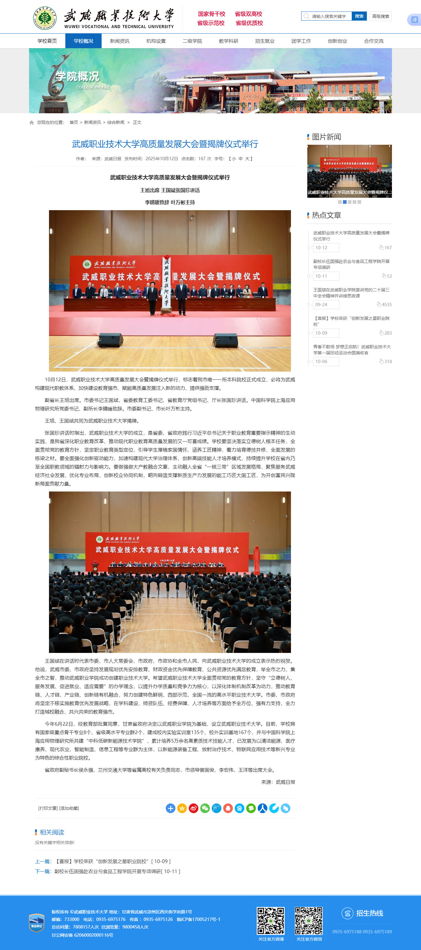 武威職業(yè)技術(shù)大學(xué)高質(zhì)量發(fā)展大會暨揭牌儀式舉行