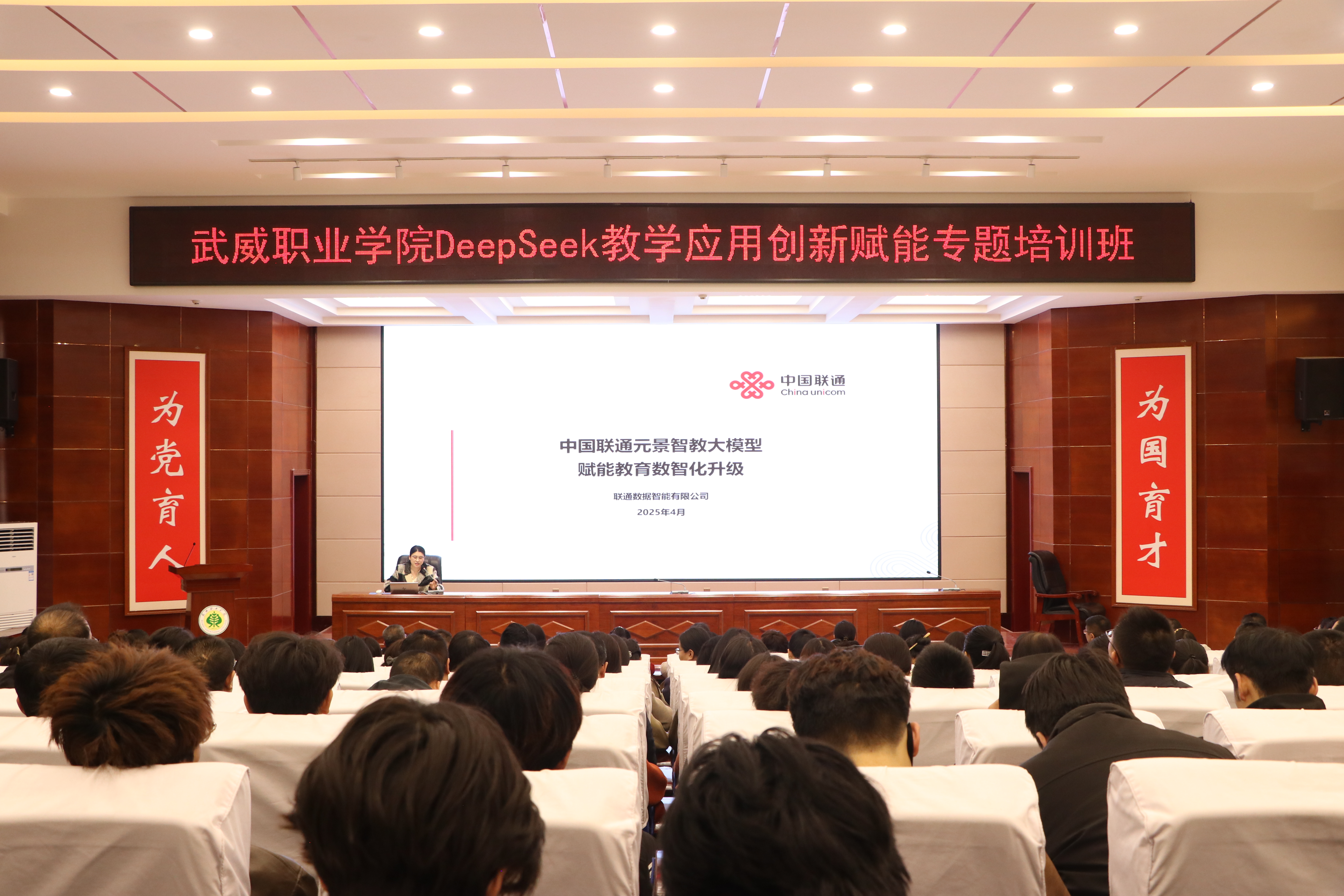 為深入探討DeepSeek技術(shù)的應(yīng)用,助力學(xué)校師生運(yùn)用AI工具進(jìn)行教學(xué)實(shí)踐、智慧課程建設(shè)與科學(xué)研究工作,為教學(xué)改革與教學(xué)創(chuàng)新實(shí)踐筑基賦能。4月3日,學(xué)校邀請(qǐng)聯(lián)通數(shù)據(jù)智能有限公司教育行業(yè)解決方案專家包紅梅和華為技術(shù)有限公司智算產(chǎn)業(yè)AI架構(gòu)師王鑫,舉辦了“DeepSeek教學(xué)應(yīng)用創(chuàng)新賦能”專題講座。講座由網(wǎng)絡(luò)安全與信息技術(shù)中心負(fù)責(zé)人史子新主持,學(xué)校各部門(mén)、二級(jí)學(xué)院教師代表,信息技術(shù)學(xué)院學(xué)生代表共計(jì)220人參加。