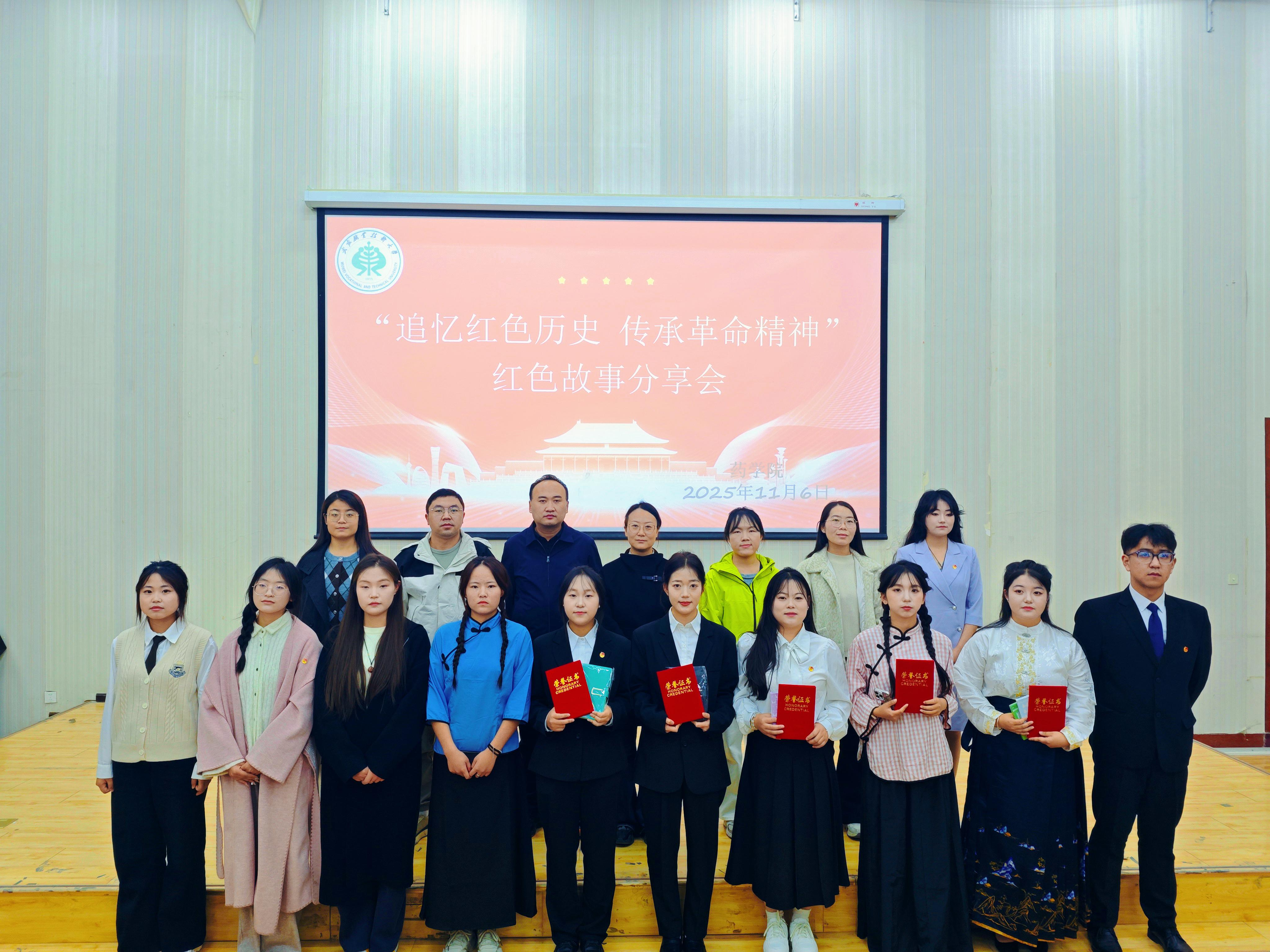 紅色盛宴震撼啟幕,各支隊伍攜優(yōu)秀作品閃亮登場。2024 級中藥學大專二班伍文娟帶來的《紅色記憶,精神傳承》,字字鏗鏘有力,滿含對革命先輩的赤忱崇敬;2025 級中藥學大專五班的話劇《覺醒時代》,生動再現(xiàn)革命志士為理想奮勇拼搏的感人場景,讓觀眾仿佛穿越時空,置身風雨如晦的往昔。振奮人心的展演過后,優(yōu)秀隊伍脫穎而出,最終 2025 級中藥學大專五班的《覺醒時代》斬獲一等獎。學院領導為獲獎學子頒發(fā)榮譽證書,給予充分肯定。這份榮譽既是鼓勵更是期許,激勵全體學子以榜樣為帆,將紅色基因融入學習之路,讓革命精神代代相傳。