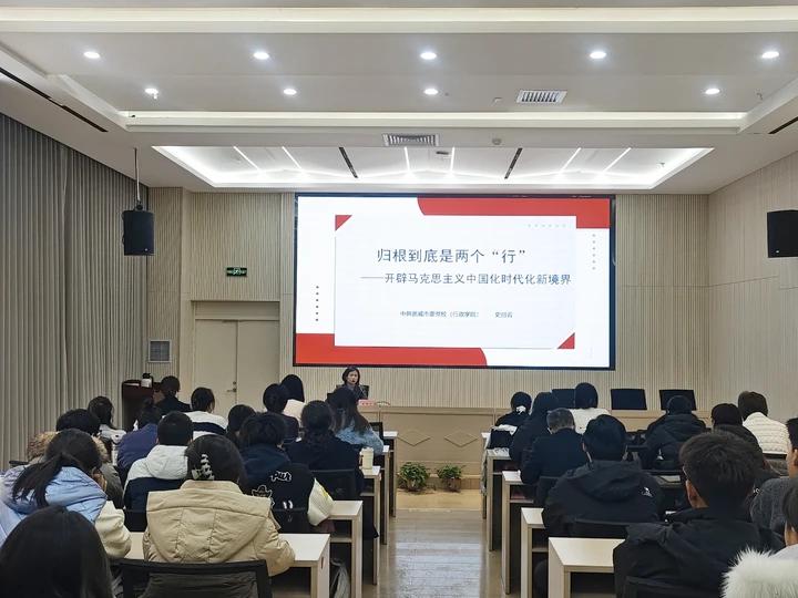 12月5日,馬克思主義學院邀請中共武威市委黨校骨干教師史麗云來校開展思政課示范教學觀摩活動?;顒佑神R克思主義學院副院長侯卿主持,全體思政課教師和部分學生代表參加。