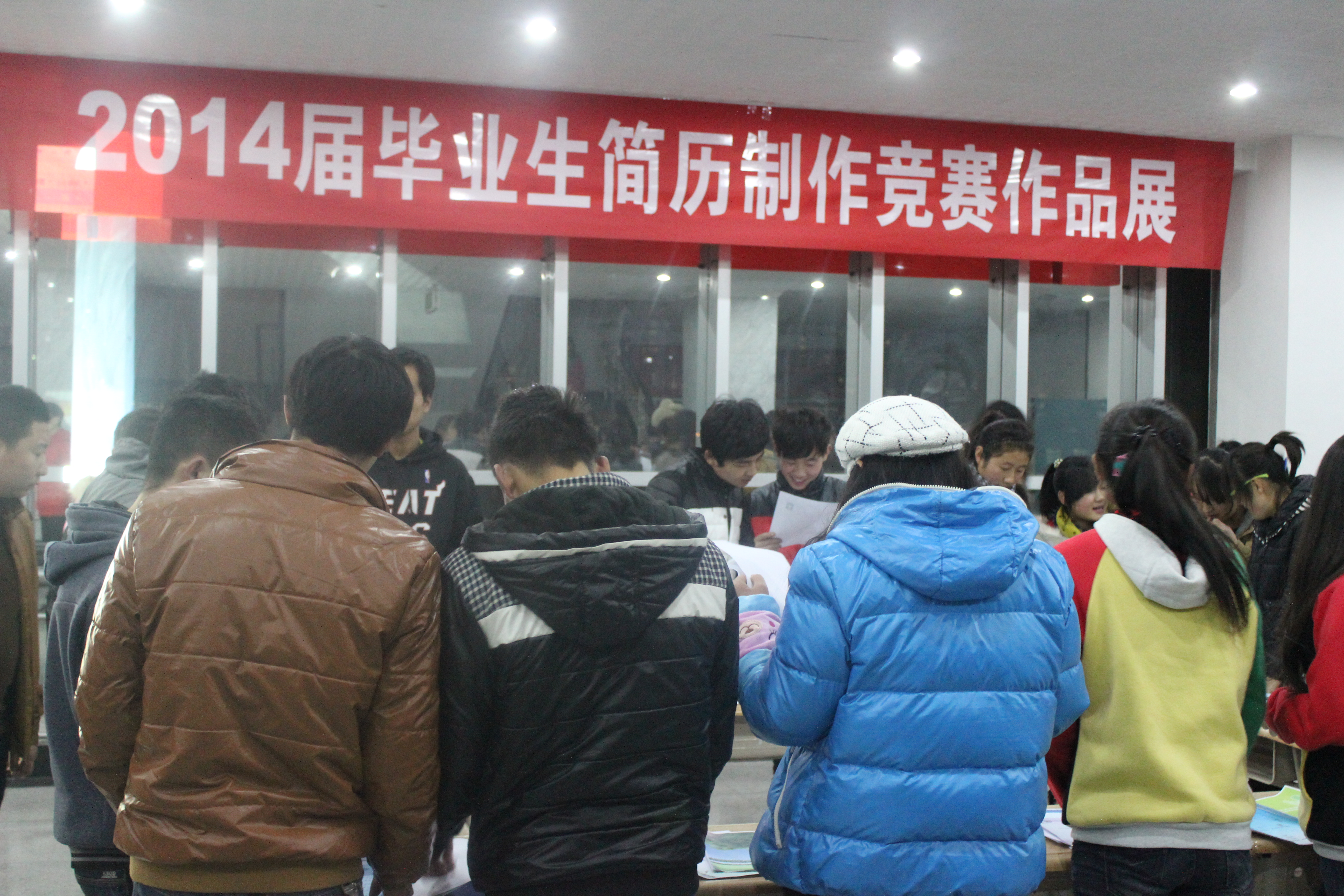 2013年12月4日晚,電信系團總支在一號教學樓3樓大廳舉辦了2014屆畢業(yè)生求職簡歷制作競賽作品展,參賽作品充分體現(xiàn)出個性特質(zhì),展現(xiàn)出同學們朝氣蓬勃的精神風貌,充分展現(xiàn)了當代青年人的職業(yè)形象。